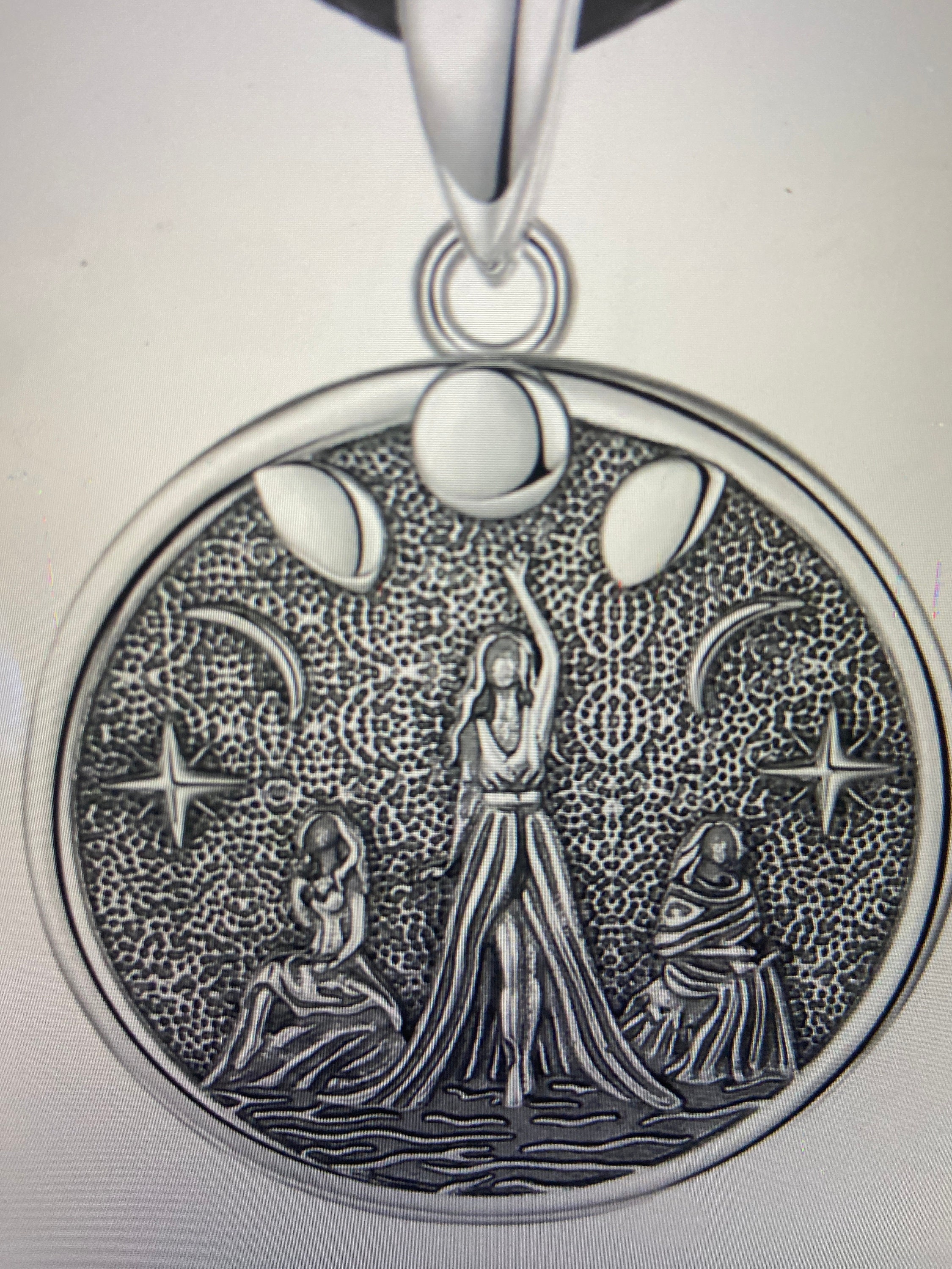 Wicca Triple moon and Tree of life or Maiden pendants on a 18" black cord. Antiqued silver color metal alloy. Pendants are 1" across.
