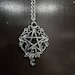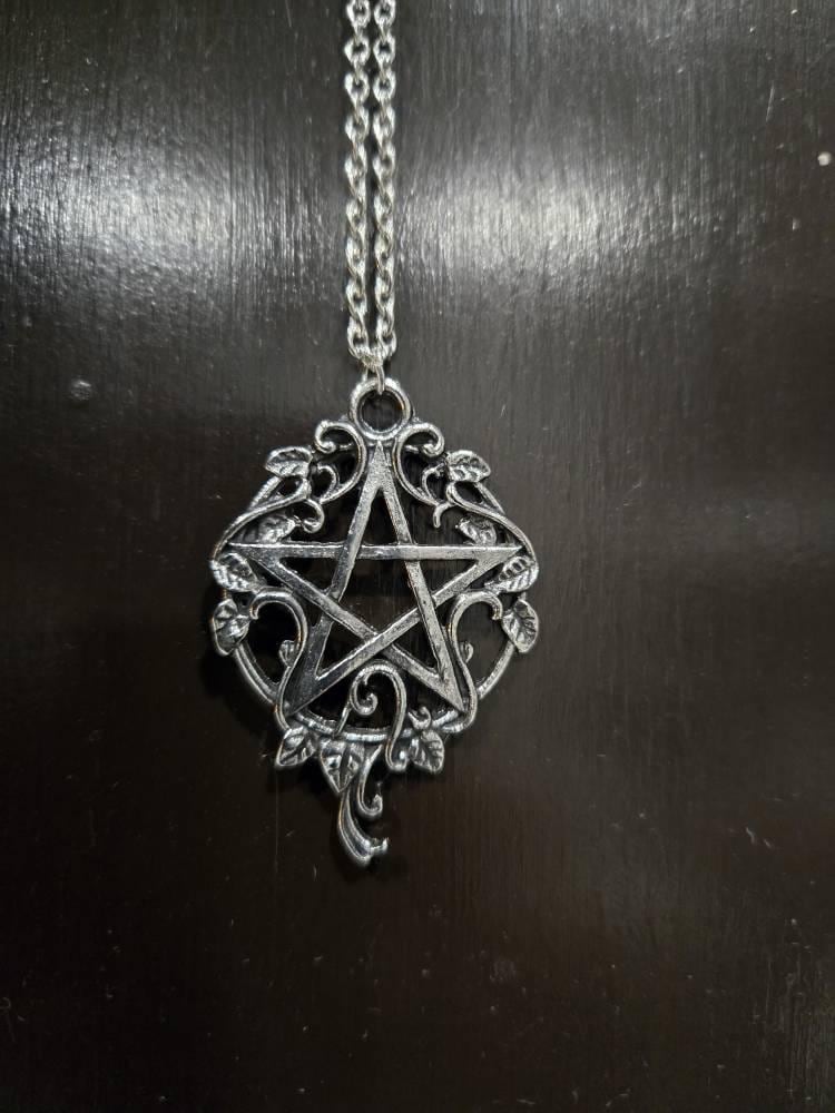 Style 1: The Delicate Victorian Pentacle made of a silver metal alloy comes with a Silver color chain with antiqued silver styled pendant. With a Lobster claw clasp. 20" chain. A favorite.