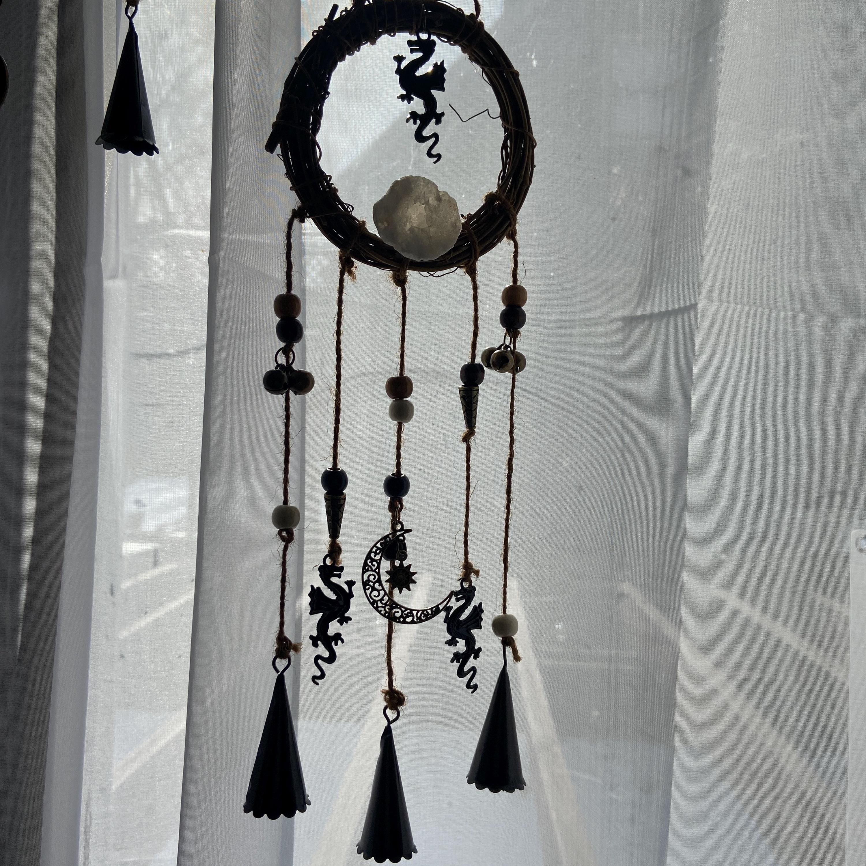 They are all Handmade, Original Designs and used for Spell Casting Aids, Protection, Healing and Enjoyment. All Natural Materials. Quartz Geods, Witches Brass Bells, Wooden Beads, Jute Twine, Metal Charms, with a Contentment Spell Cast on each one.